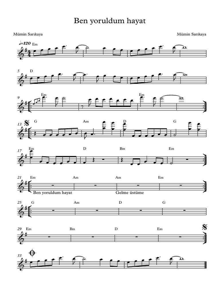 Mumin Sarikaya Ben Yoruldum Hayat Nota Tab Youtube