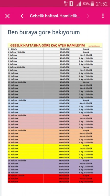 Gebelik Haftasina Gore Kac Aylik Hamileyim Ozel Tablolu