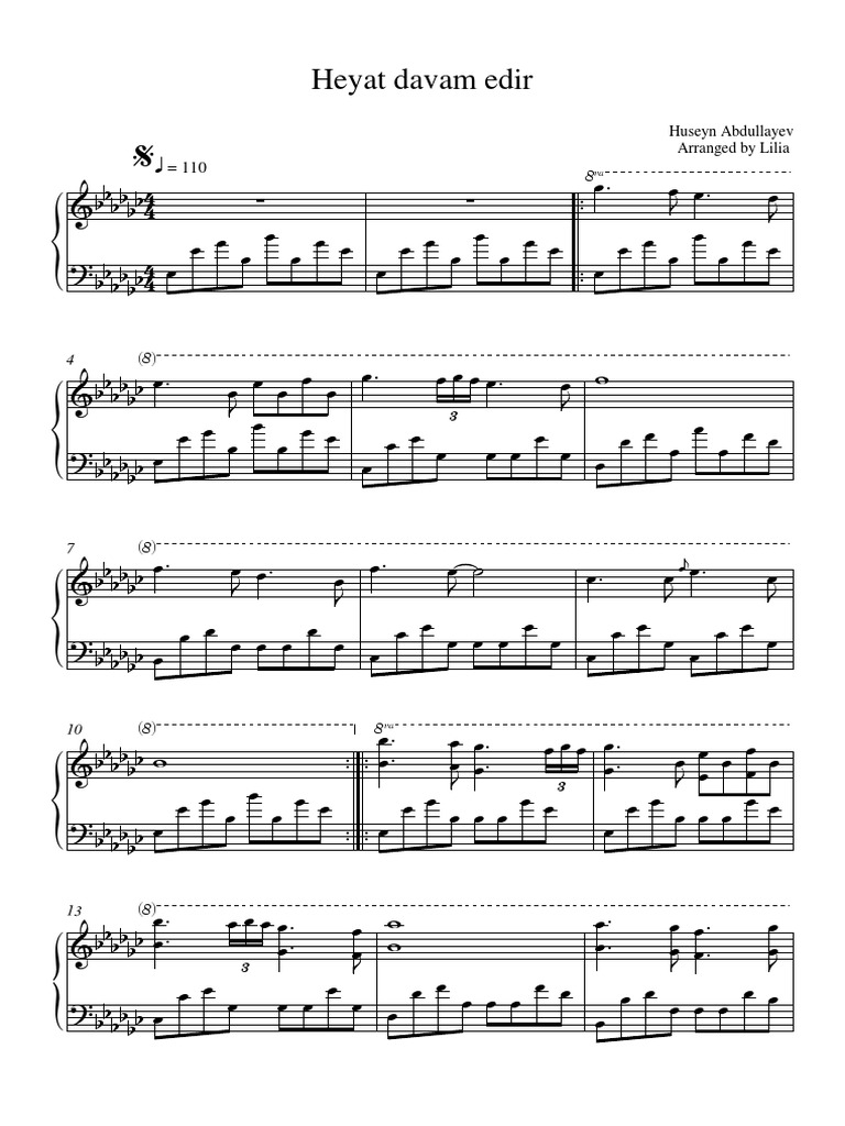 Heyat Davam Edir Huseyn Abdullayev Piano Lesson Sheet Music